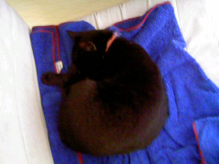 今日も良い天気である。部屋を出たら、ベランダでグレイが寝ていたよ。慎ましい奴だなあ。